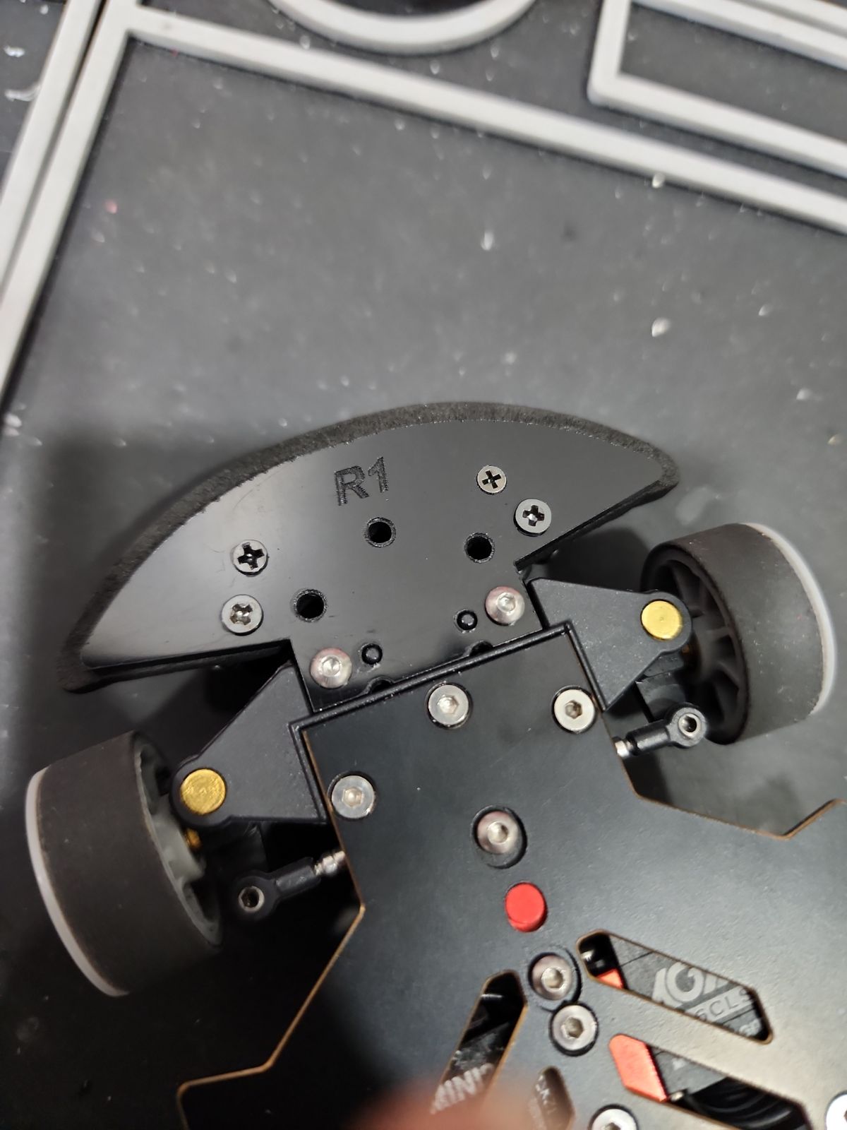 the front bumper consists of the lower laser cut plate, a Foam Core center, and the upper cross brace. The holes line up with the GL body holes.