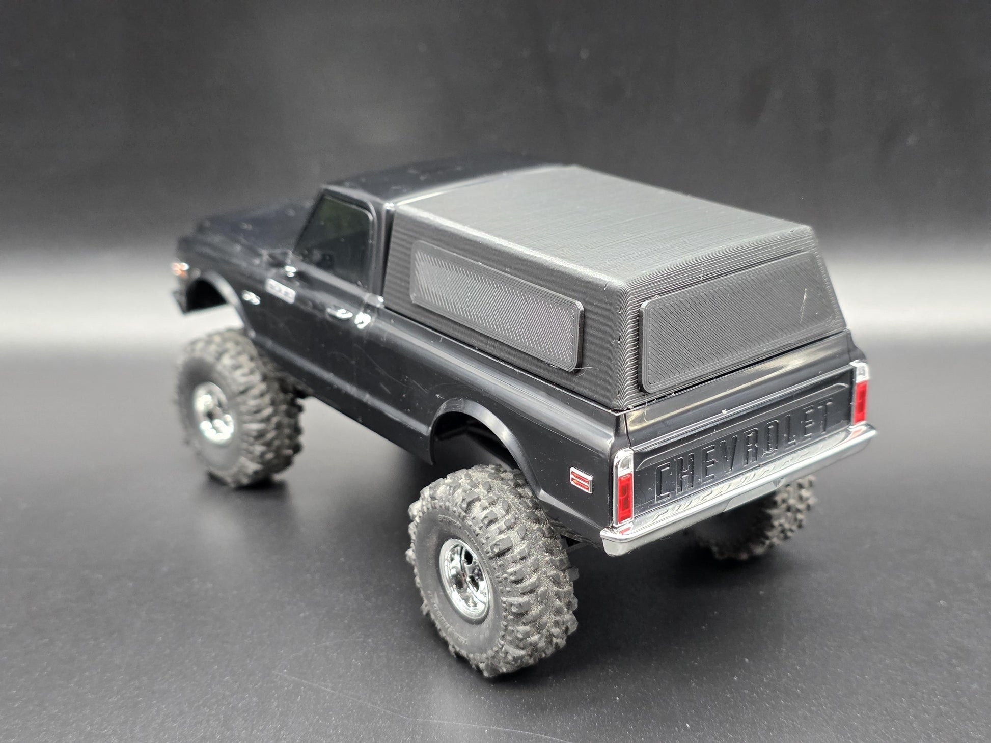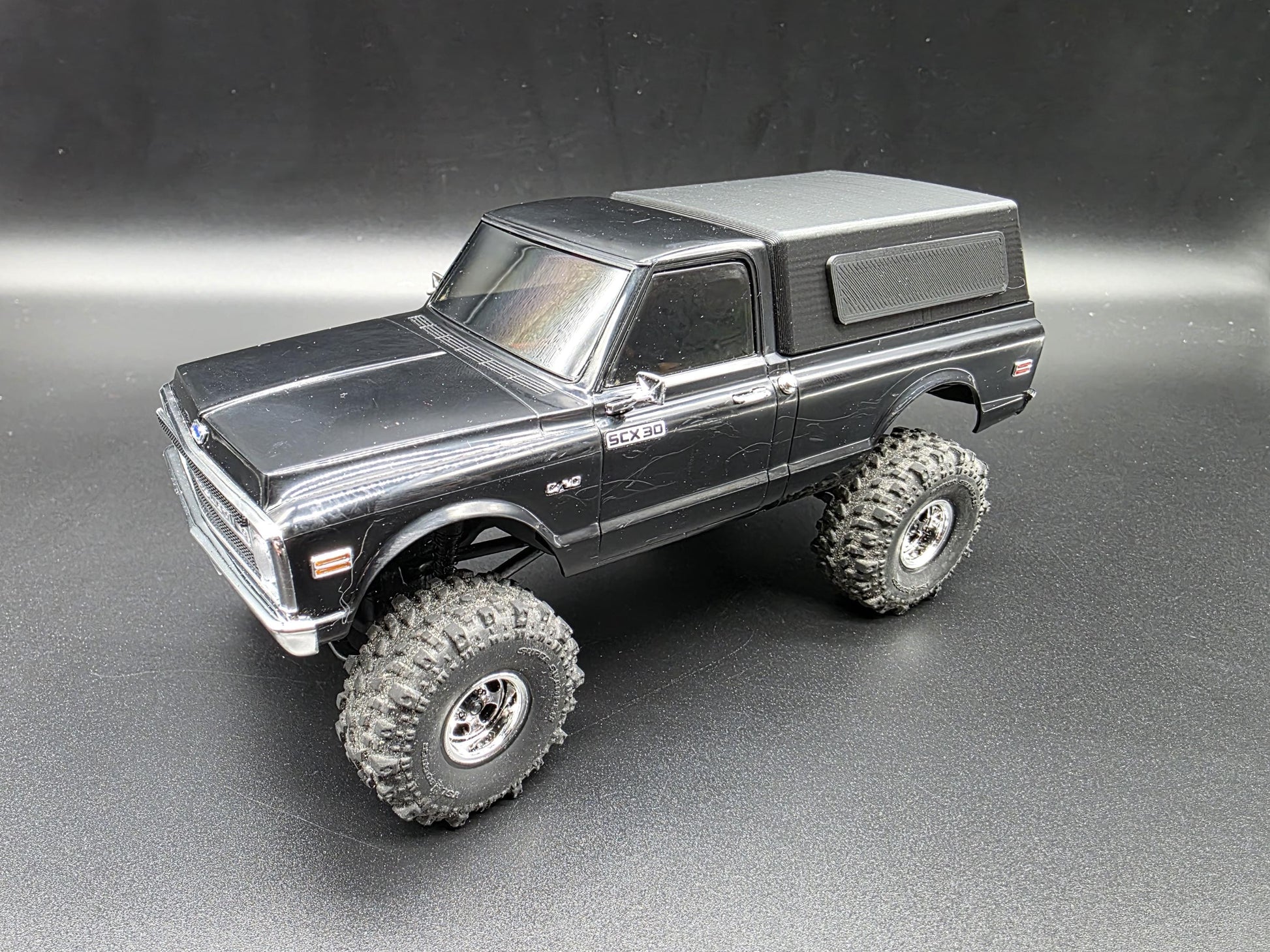 These are custom designed 3d printed 1/30 scale Camper Shell Bed Cap Covers for Axial SCX30 K10 Chevy Crawlers (early 2026 release)