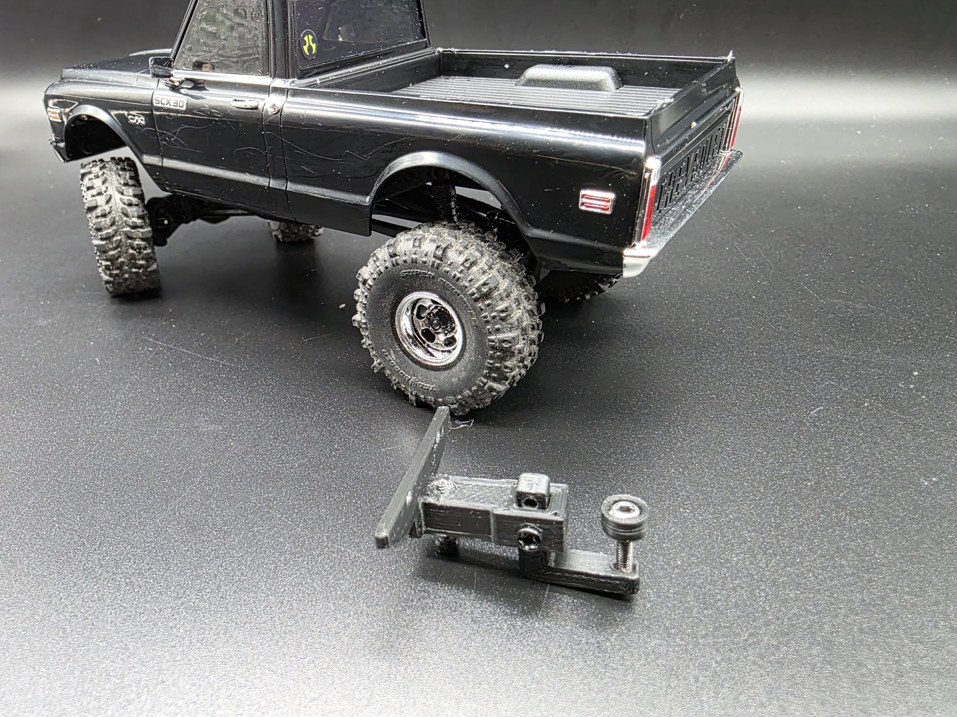 These are custom designed 3d printed 1/30 scale trailer hitches for the Axial SCX30 Bronco and Jeep (late 2025 release) and the K10 Chevy (early 2026 release)